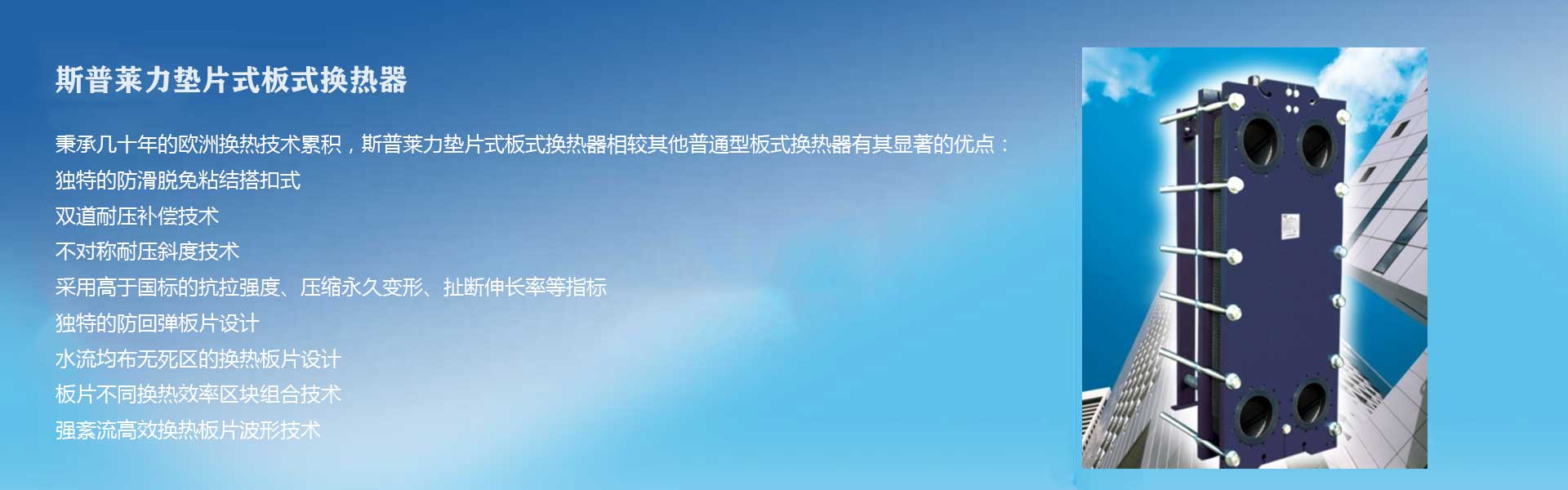 斯普萊力(CPHEX INTERNATIONAL)公司,一個具有三十多年開發研制經驗的專業生產換熱器及壓力容器設備的制造企業,歐洲知名的板式換熱器品牌之一。由于其多年豐富的實踐經驗和專業技術,今天,CPHEX 的產品已被廣泛地應用于機械、食品、化工、冶金、能源及暖通空調等各種工業領域,深得客戶的信賴和支持。
